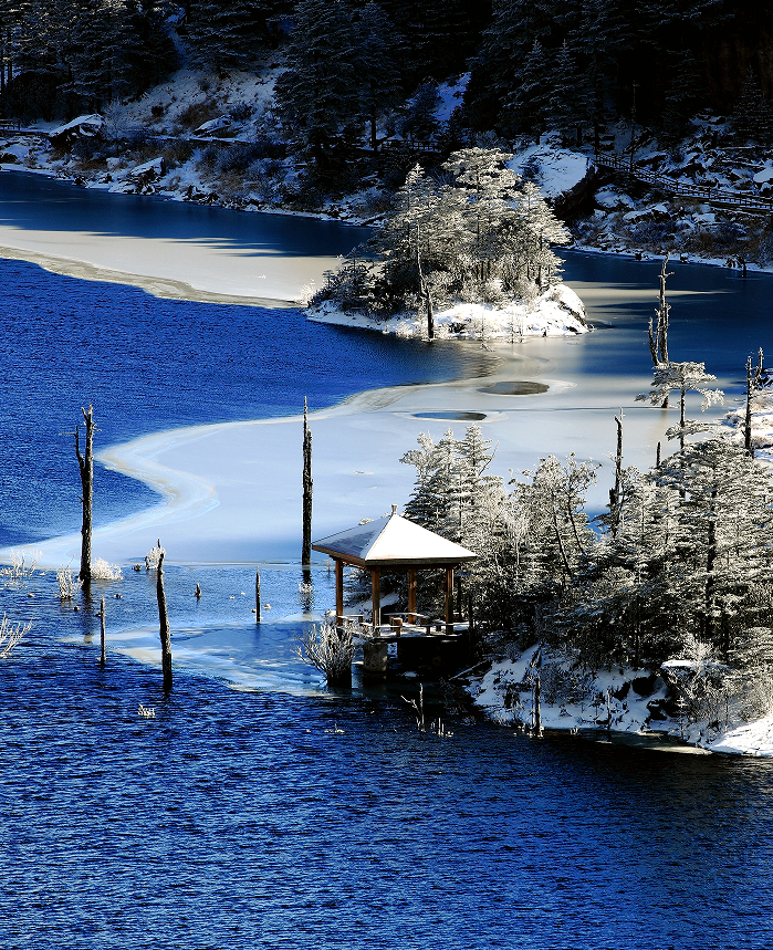 从西昌出发2小时车程直奔螺髻山景区,冬日的螺髻山就是童话里的冰雪王国,皑皑白雪衬托下,天空的澄澈、湖水的蔚蓝、冰瀑的晶莹、松针的苍翠和阳光的璀璨都显得格外动人。
